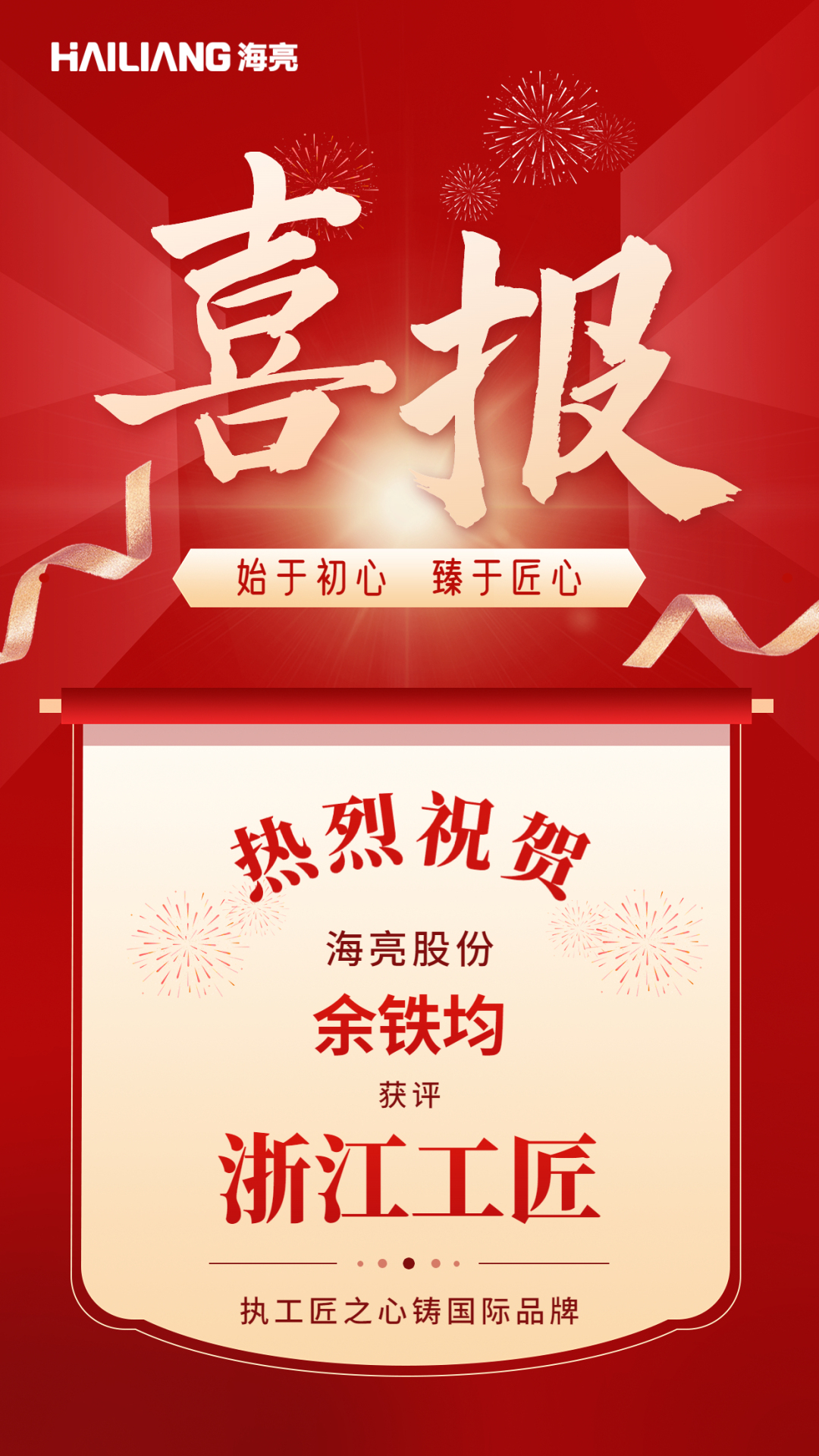 日前,浙江省人力資源與社會保障廳、浙江省總工會聯(lián)合公布了2022年“浙江工匠”培養(yǎng)項目人員名單。海亮股份研發(fā)工程師余鐵均榮獲“浙江工匠”稱號,充分展現(xiàn)了海亮人“文化為根、技藝為骨、匠心為魂”的新時代工匠風采。