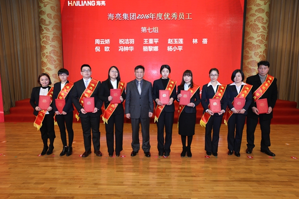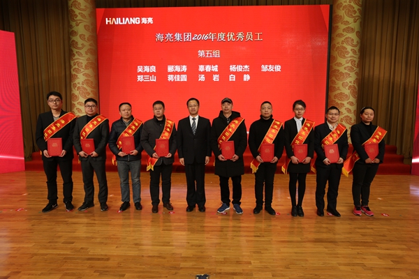 會上,詹天浩宣讀了《海亮集團關于表彰2016年度先進集體和先進個人的決定》。海亮地產控股集團管理有限公司城市公司總經理張留學、浙江海亮教育集團副總校長黃平、浙江海亮融資租賃有限公司總經理助理俞標、浙江海亮股份有限公司質量管理中心總監馬為民4人被授予2016年度“勞動模范”,吳斌、王莉靜、周東杰3人被授予“創新貢獻標兵”,孫莎沙、胡建剛等7人被授予“優秀共產黨員”,斯佳露、唐洪明等76人被授予“優秀員工”,私立諸暨高級中學特色班型團隊等3個單位被授予“創新貢獻團隊”,集團廉正監察部、股份公司采購管理中心等11個單位被授予“先進集體”,西藏海亮地產黨支部、海亮安徽銅業有限公司工會等8個單位被授予“先進群團組織”。集團董事局成員和集團黨委主要負責人上臺為先進集體和先進個人頒發了獎金和證書。