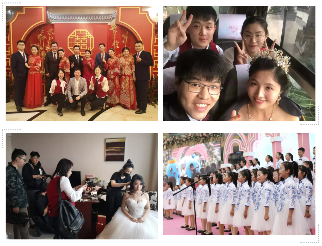 在婚禮儀式前,組委會特意為參加集體婚禮的新人們定制了一系列別具匠心和意義特殊的崗位婚紗照。
