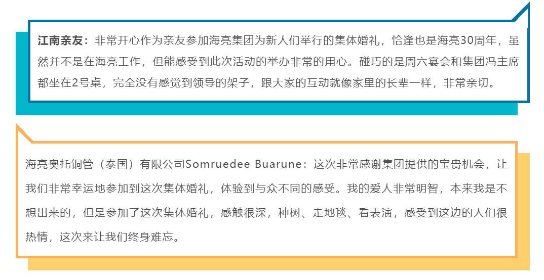 2018年11月,為關心青年員工婚姻,海亮集團發(fā)文設立了“紅繡球獎”,明確提出要把關心青年特別是大齡青年的個人婚姻問題作為企業(yè)穩(wěn)定隊伍的一件大事來抓,鼓勵全體海亮人為青年員工牽線搭橋。截至目前,經(jīng)申報和審核驗證,共有14對青年員工通過 “海亮紅繡球獎”的平臺彼此相戀并成功領證,婚禮現(xiàn)場也邀請到了獲得海亮集團第一批”紅繡球獎“表彰的員工紅娘們,紅娘們收獲了沉甸甸的999純金金牌。